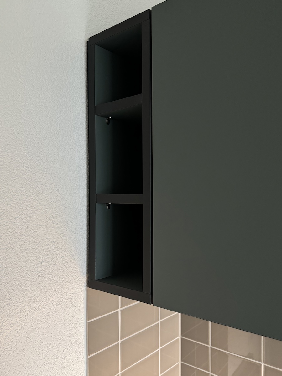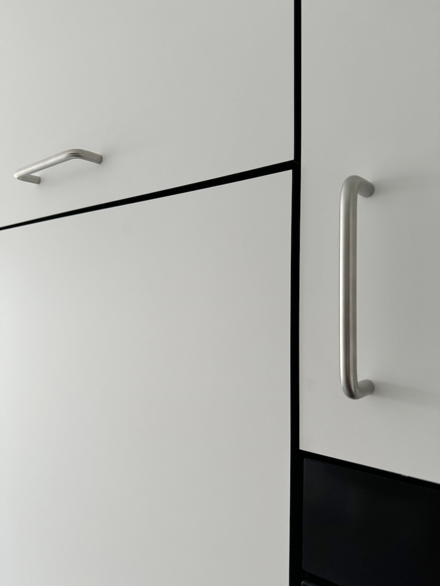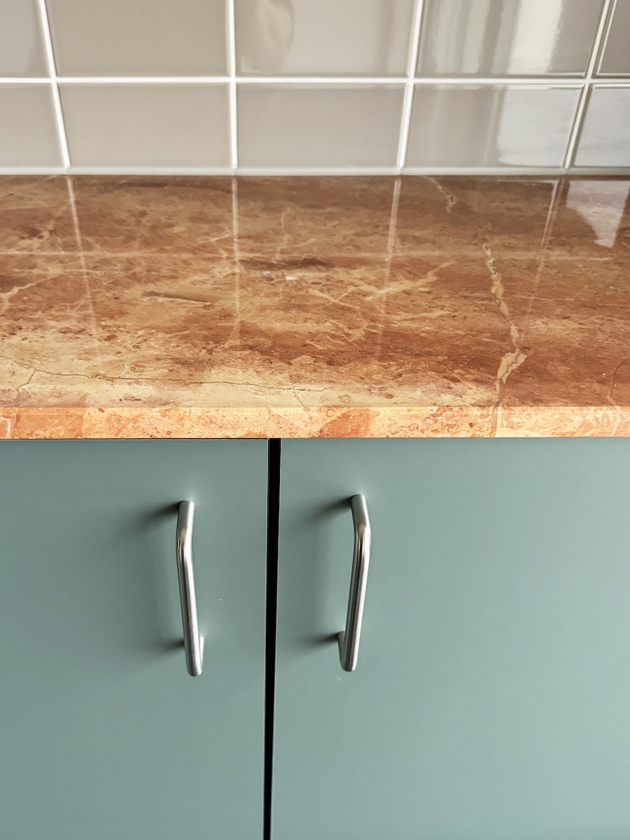 Renovation einer Wohnung der 60er Jahre, Gestaltung mit einfachen Elementen und Standard-Materialien sowie buntem Naturstein aus Restposten, in Kooperation mit Gabriela Günthert.
